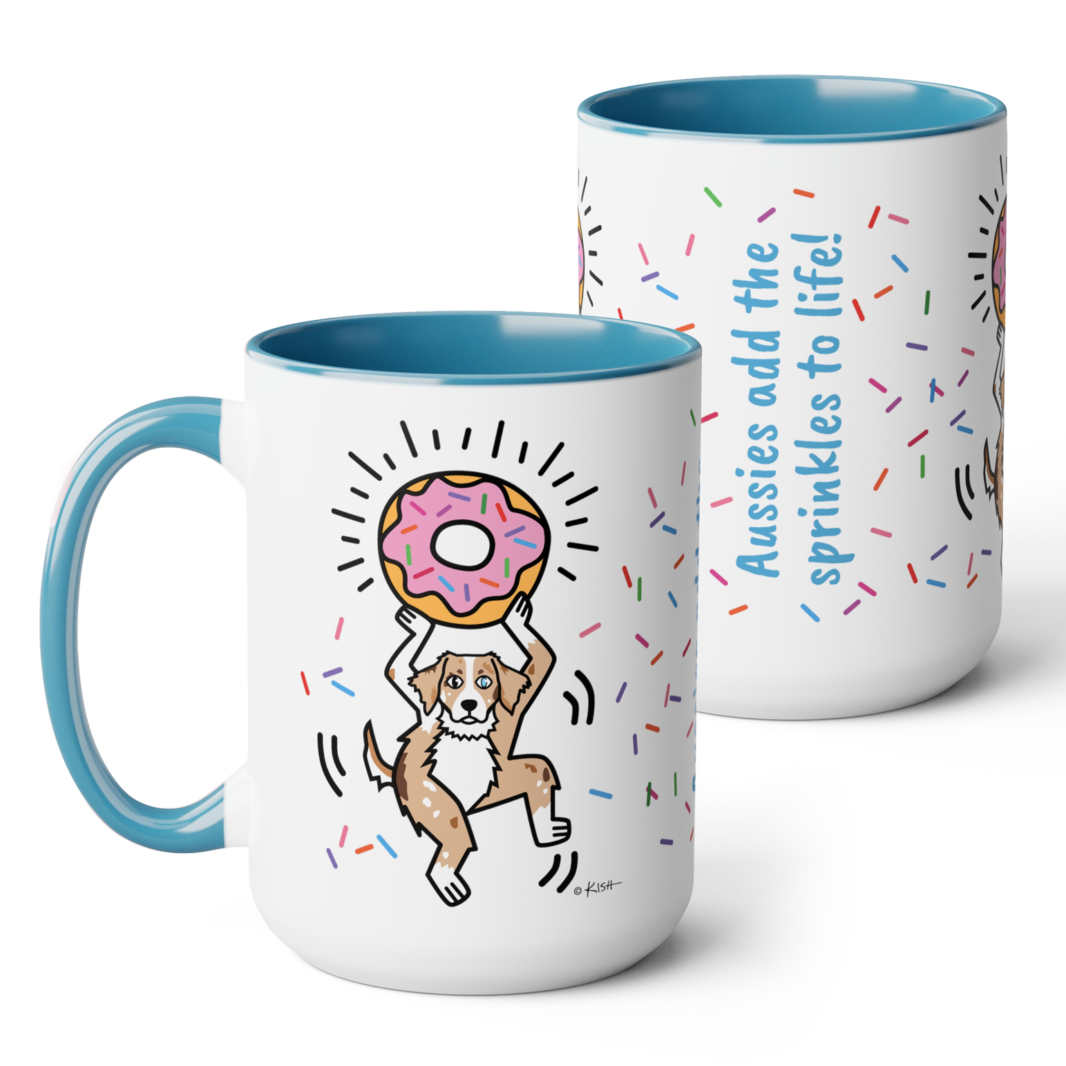 ShareĀ your Australian Shepherd adoration withĀ this adorableĀ AUSSIEĀ š©Ā DONUTĀ MUGĀ representingĀ your favorite Aussie!Ā A perfect gift for Australian Shepherd dog & donut-loving family and friends.