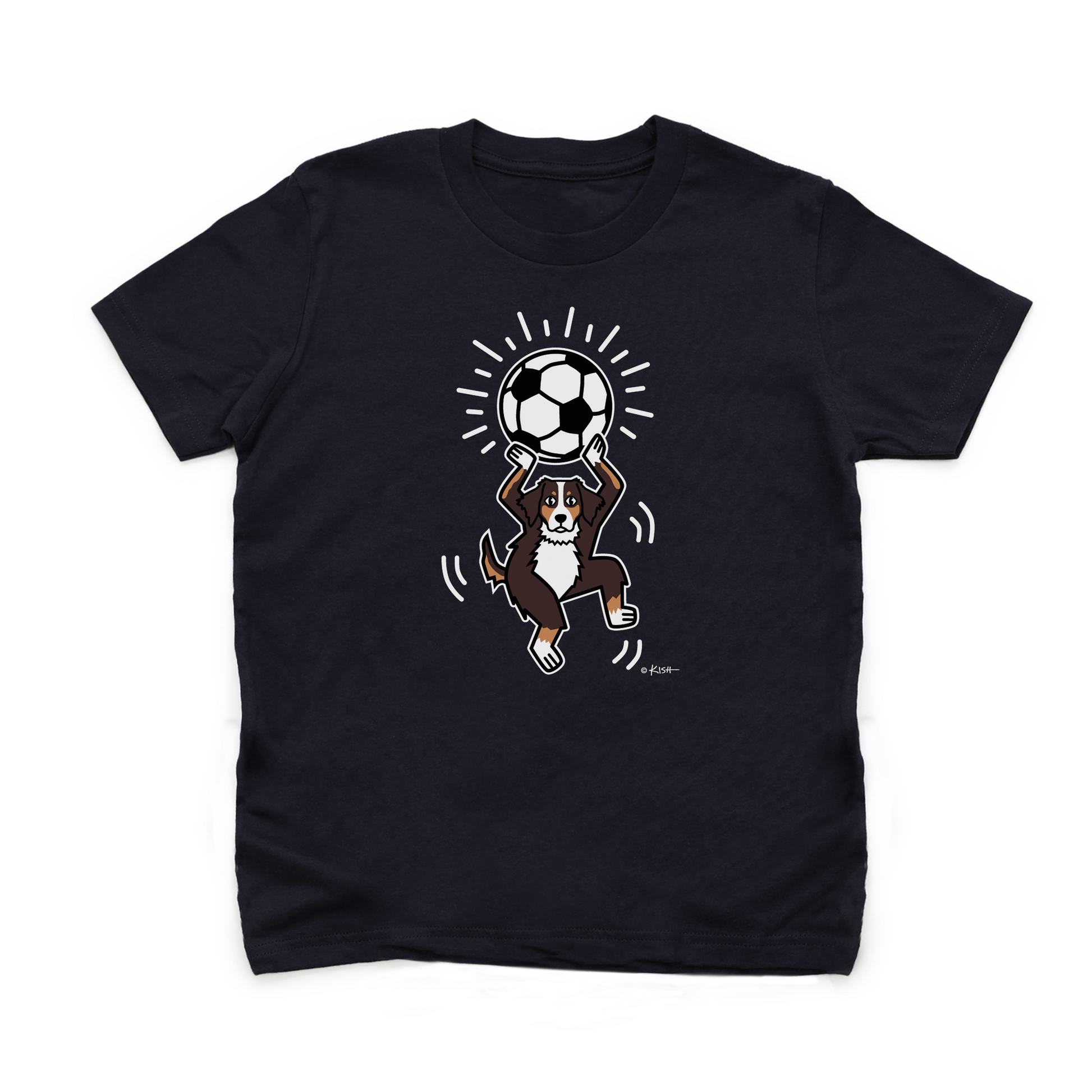Kids will love sharing their pet in this super cute AUSSIE ⚽️ SOCCER TEE representing their favorite dog. A perfect gift for Australian Shepherd dog-loving family and friends.